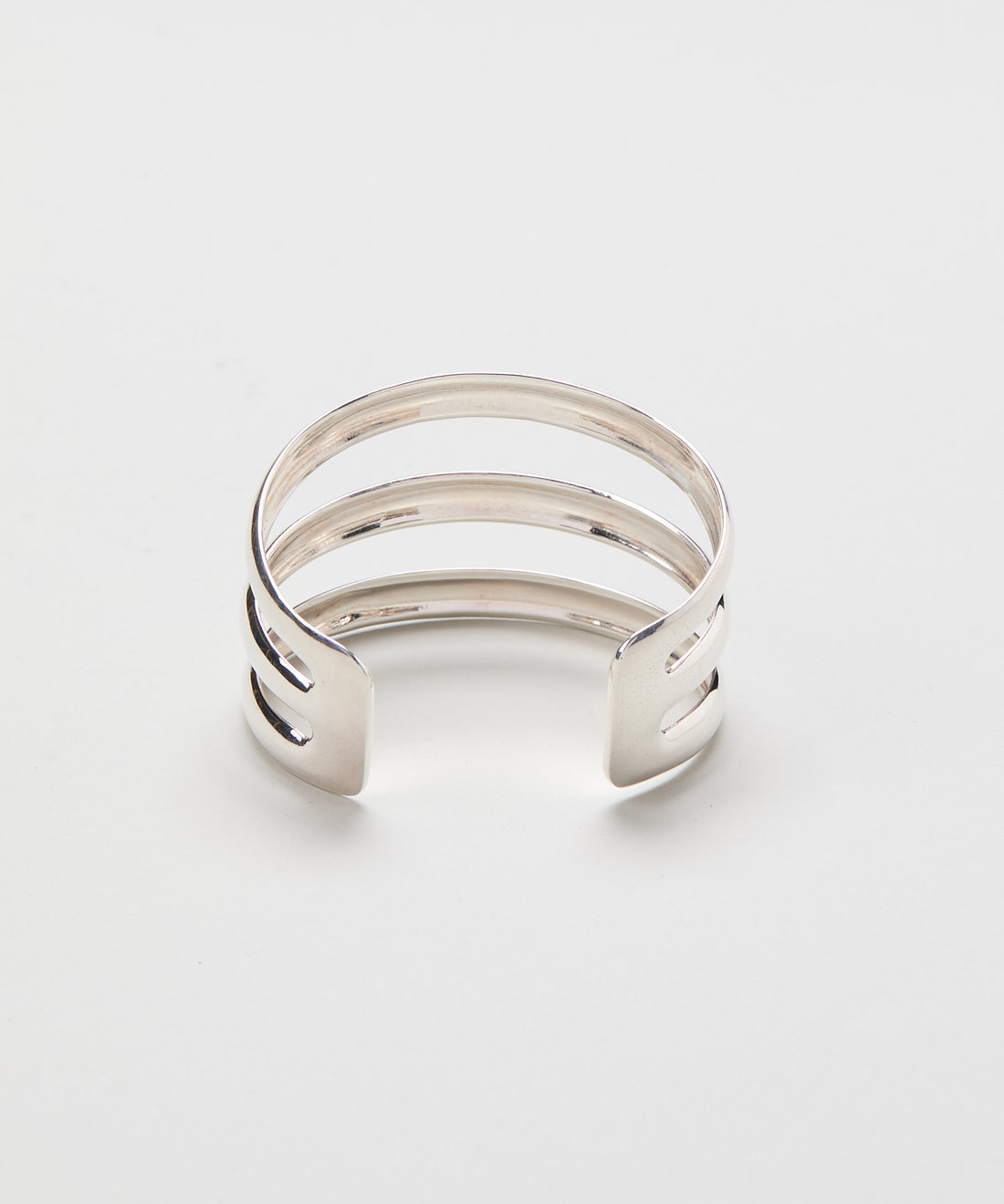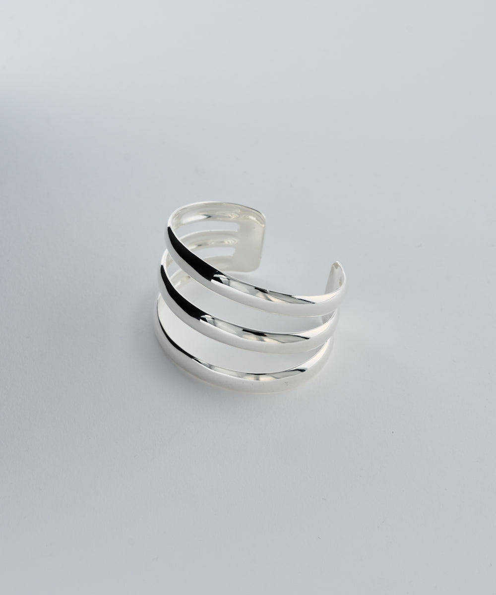 連続性を感じさせるリズムが織り成す反復の美、静かで洗練されたバランスが醸し出す構成美を表現する、3本ラインワイドバングル。