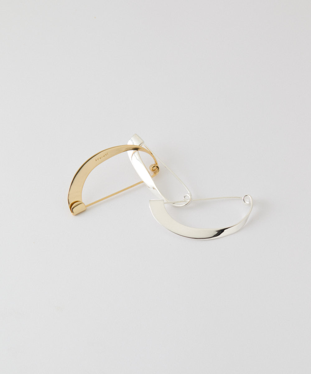 安全ピンの構造を再構築し、葉や蔓のような⾃然のかたちへと昇華させたフォルムに、静かな造形美と実⽤性が共存します。